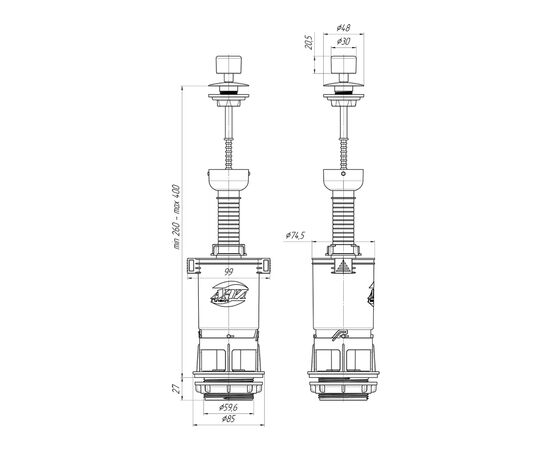 WC-7040М Колонка спускная шток ручка металлизированная АНИ
