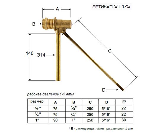 Минимальное количество для товара "Клапан для унитаза горизонтальный 1/2 ST 175 без поплавка" 1.