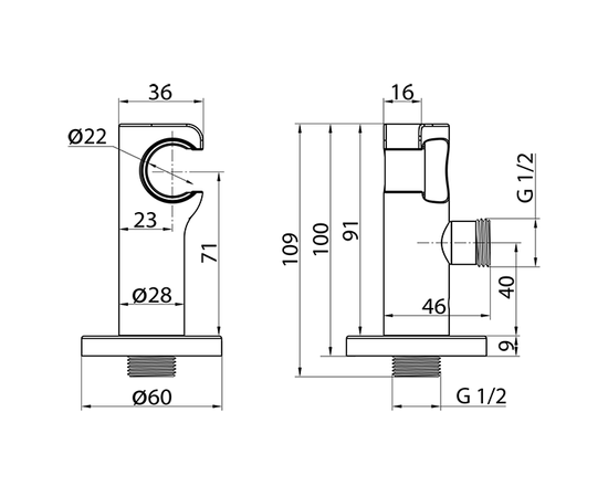 Подключение для душевого шланга, с боковым держателем лейки, 1/2" ELGHANSA WS-6K