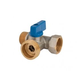 Кран проходной шаровый для стиральной машины 1/2 х 3/4 х 1/2 гшш никель под ключ ST2361