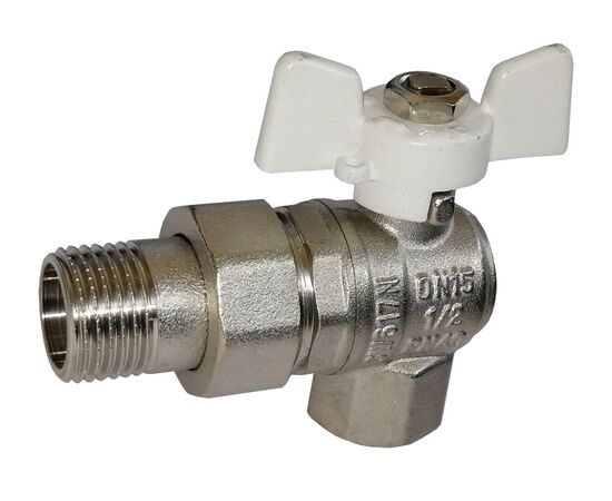 Кран шаровый угловой со сгоном 3/4" г/ш бабочка белая WM222
