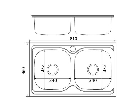 Минимальное количество для товара "Мойка врезная 46х81 две чаши (0,8) выпуск 3 1/2 MIXLINE 18 см с сифоном" 1.