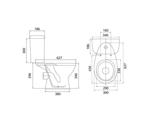 Унитаз-компакт Pro горизонтальный выпуск 1-режимная кнопочная арматура сиденье полипропилен SANTERI