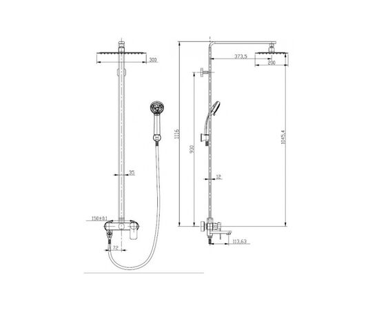2302235-2G Душевая система Elghansa MONDSCHEIN с верхним душем 300х200мм, хром