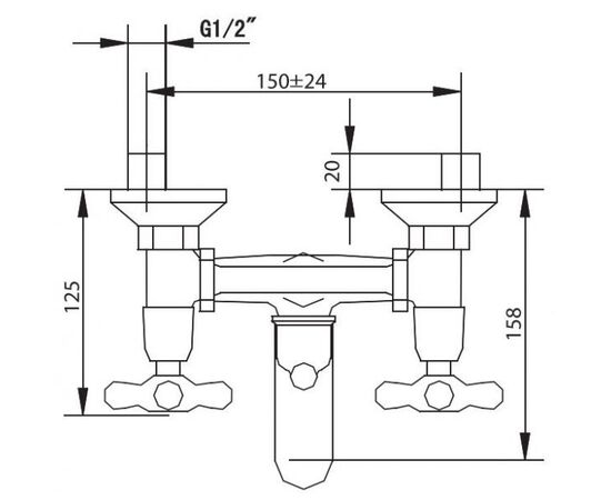2700754-1 Смеситель Elghansa RETRO CHROME для ванны двухвентильный с металлической лейкой, хром