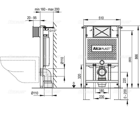 A-101/850 Скрытая система инсталляции для сухой установки (для гипсокартона) ALCAPLAST
