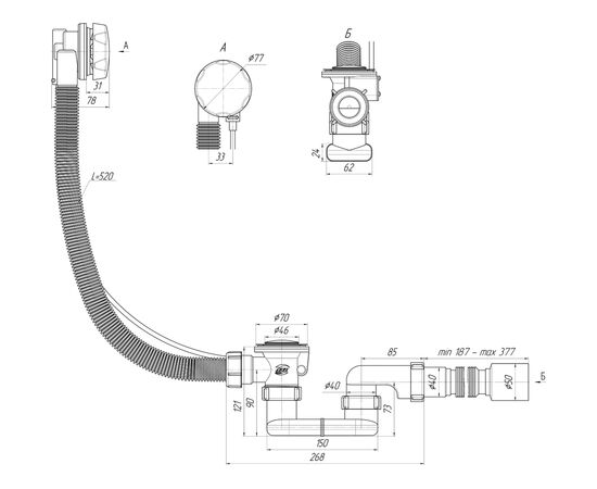 Обвязка полуавтомат АНИ с плоским сифоном L-580мм (ручка пластик хром)+гофра 375*40/50 EM-701 (15 шт)