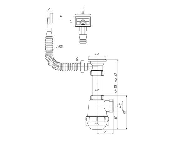 Минимальное количество для товара "Сифон АНИ Грот 1 1/2х40 с гибким прямоугольным переливом A-0140S (30шт)" 1.