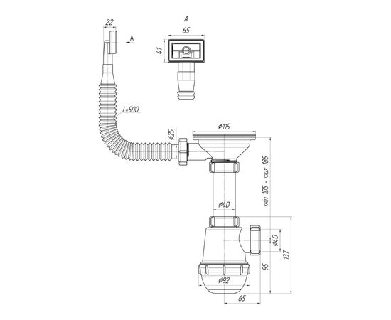 Минимальное количество для товара "Сифон АНИ Грот 3 1/2х40 с гибким прямоугольным переливом A-0145S (10шт)" 1.