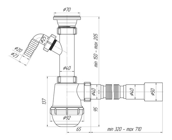 Минимальное количество для товара "Сифон АНИ Грот 1 1/2х40 с носиком+гофра 40х40/50 A-1015 (25шт)" 1.