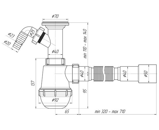 Минимальное количество для товара "Сифон АНИ Грот 1 1/2х40 литой выпуск с носиком+гофра 40х40/50 A-2015 (25шт)" 1.