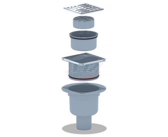 Трап вертикальный регулируемый, с сухим затвором, с решёткой из нержавеющей стали 100*100 мм АНИ TQ-5702 (12 шт)