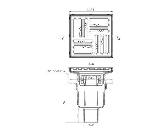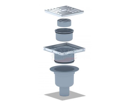 Трап вертикальный регулируемый, с сухим затвором, с решёткой из нержавеющей стали 150*150 мм АНИ TQ-5712 (10 шт)