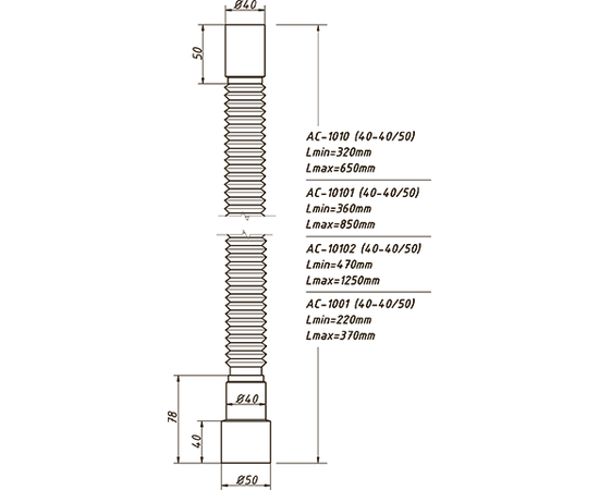 Гофра для сифона ОРИО 40х40/50 (L-1250 мм) АС- 10102