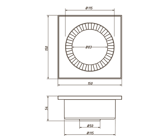 Трап вертикальный пластиковый D-50 мм с пластиковой решеткой 150х150мм ОРИО ТО-2115
