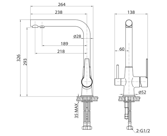 Минимальное количество для товара "Смеситель для кухни однорычажный (для фильтра) с боковым переключателем 56A5404 ELGHANSA" 1.