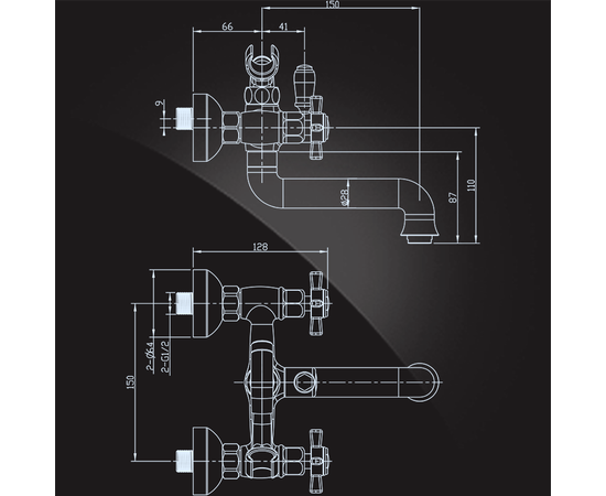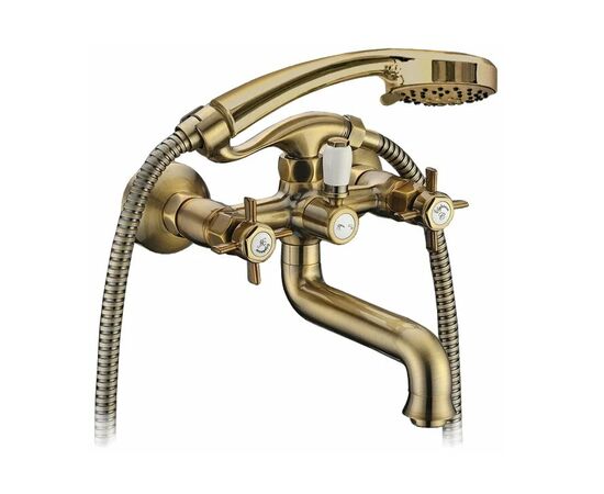 Смеситель для ванны Praktic Bronze ELGHANSA короткий нос двухвентильный с душевым комплектом артикул 2312660-Bronze