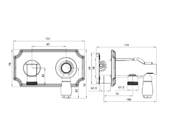Смеситель-моноблок встраиваемый 25 мм для гигиенического душа ClassicLine 12C0884-Bronze (Set-49) ELGHANSA