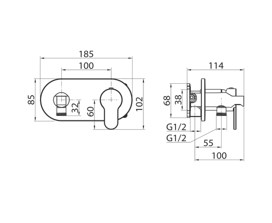 Смеситель-моноблок встраиваемый для гигиенического душа Dynamic 15R0883-White (Set-51) ELGHANSA