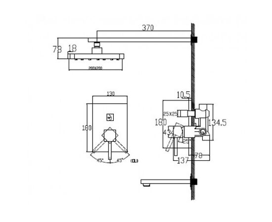 Смеситель KAISER Quadris скрытый монтаж с пер и верхним душем 25270