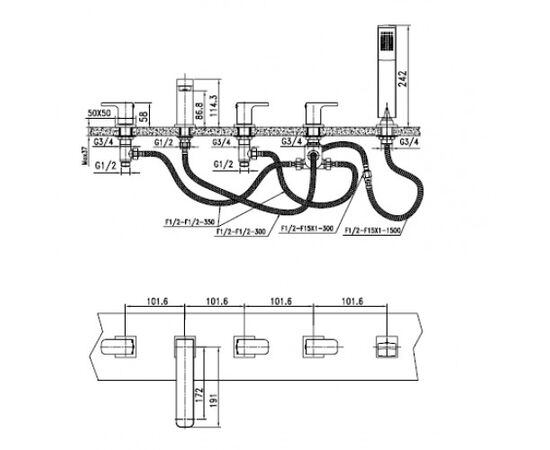 Смеситель KAISER Sonat для ванны на 5 отверстий 34222
