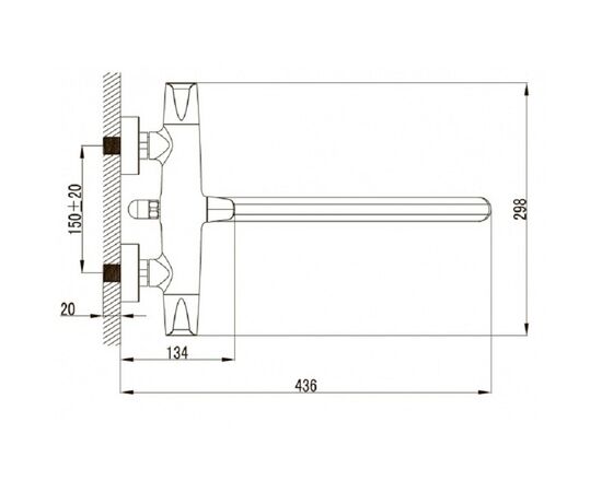 Смеситель KAISER Suer для ванны 2-х венильный (кер/перекл.) пл/излив +DN-027 46155+DN-027
