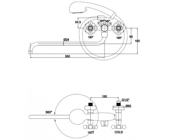 Смеситель KAISER Carlson Lux для ванны маховики крест картридж керамика артикул 11155