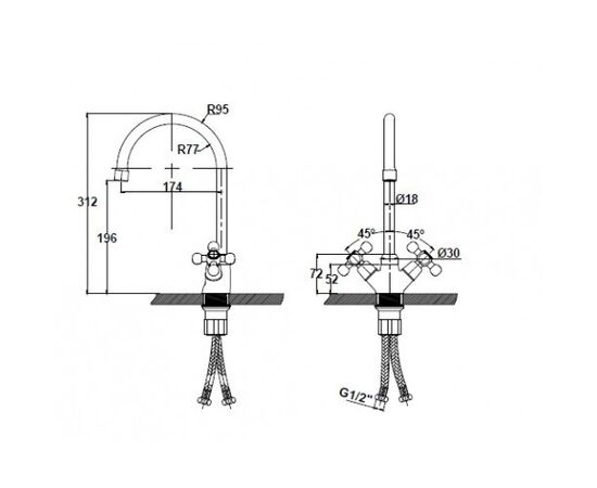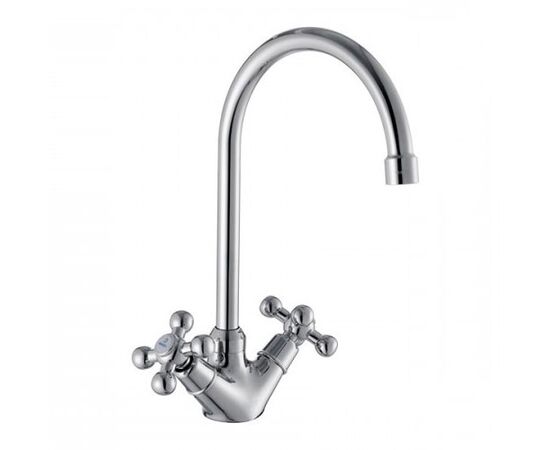 Смеситель KAISER Сarlson для кухни маховики крест керамический картридж c гайкой "U"- излив артикул 11043