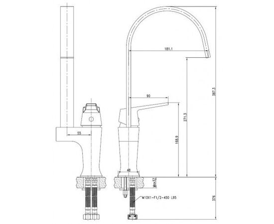 Смеситель KAISER Vita для кухни ф40 однорукий боковой U-образный артикул 43044