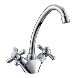 Смеситель KAISER Carlson для мойки маховики крест керамический картридж (литой излив)...