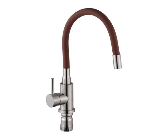 Смеситель 4458 VIKO кухня боковой с коричневым гибким изливом Ø35 с гайкой (нержавейка), Silver