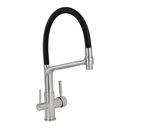 Минимальное количество для товара "Смеситель 5605 VIKO кухня боковой под фильтр Ø35 с черным гибким изливом Silver (латунь)" 1.